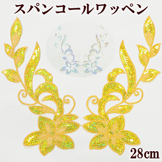 スパンコール ワッペン 2枚セット 約28cm 全2色 《 モチーフ 衣装 材料 スパン コスチューム バトン ダンス 新体操 キラキラ チア ポイント 手作り 手芸 ハンドメイド 》